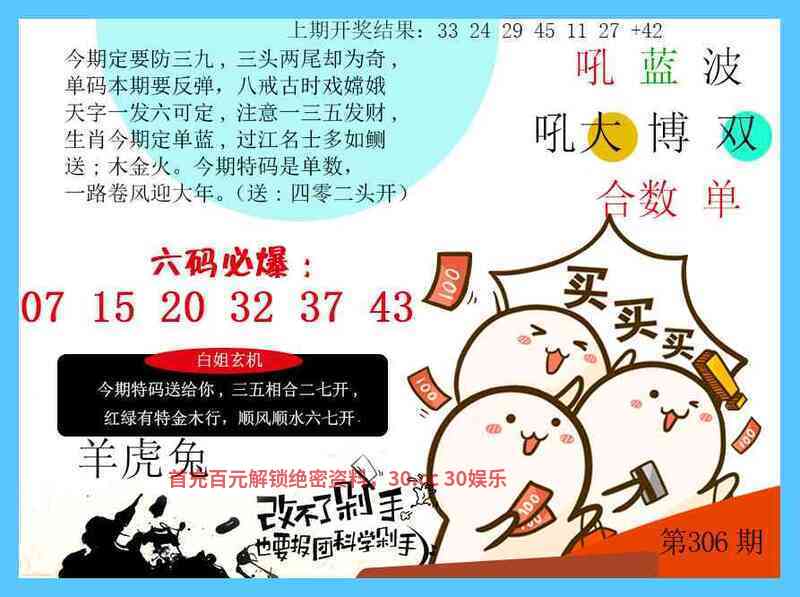 | 307期:⑧码 | 45.21.20.44.02.38.06.30 | 開:狗20 |