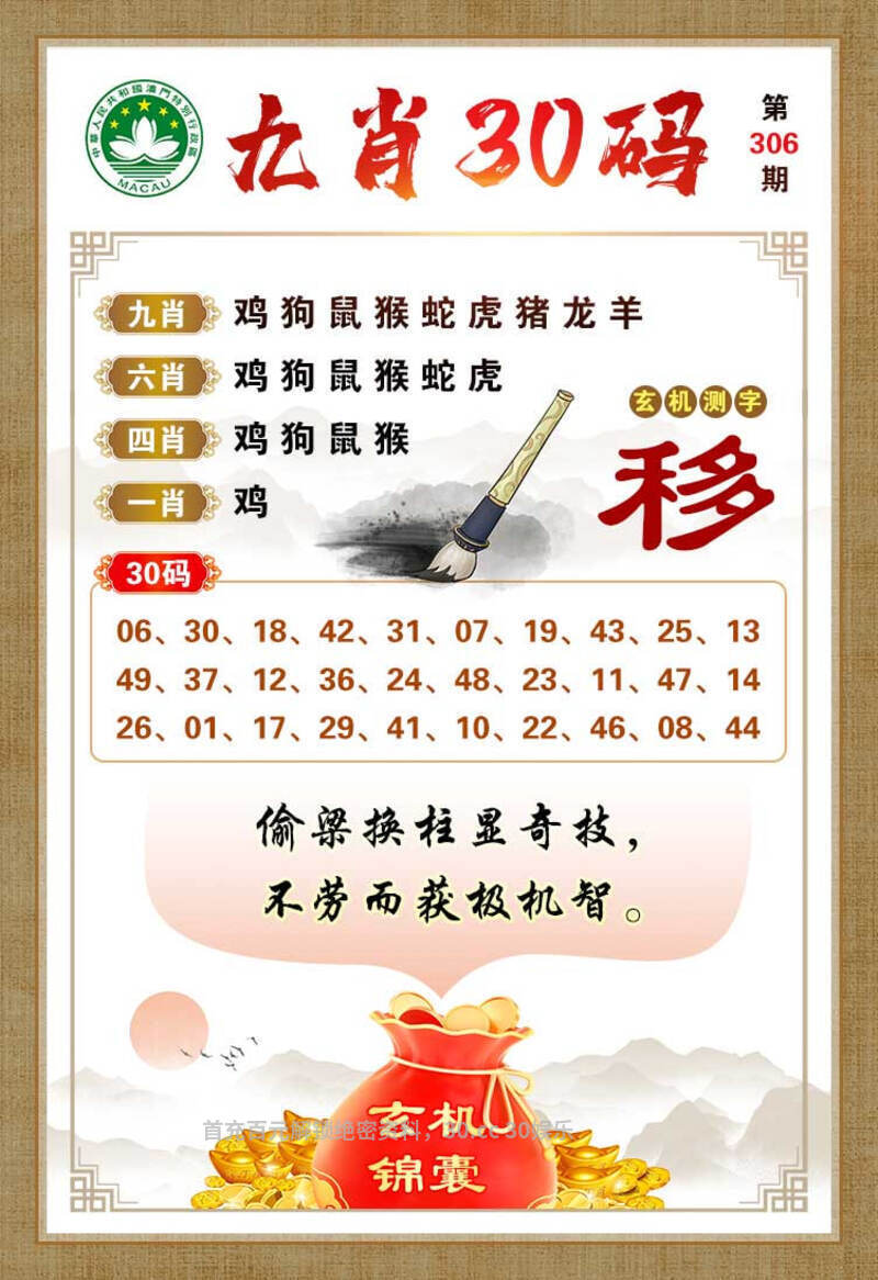 | 306期:九肖 | 鼠牛狗猪鸡蛇龙兔猴 | 開:牛17 |