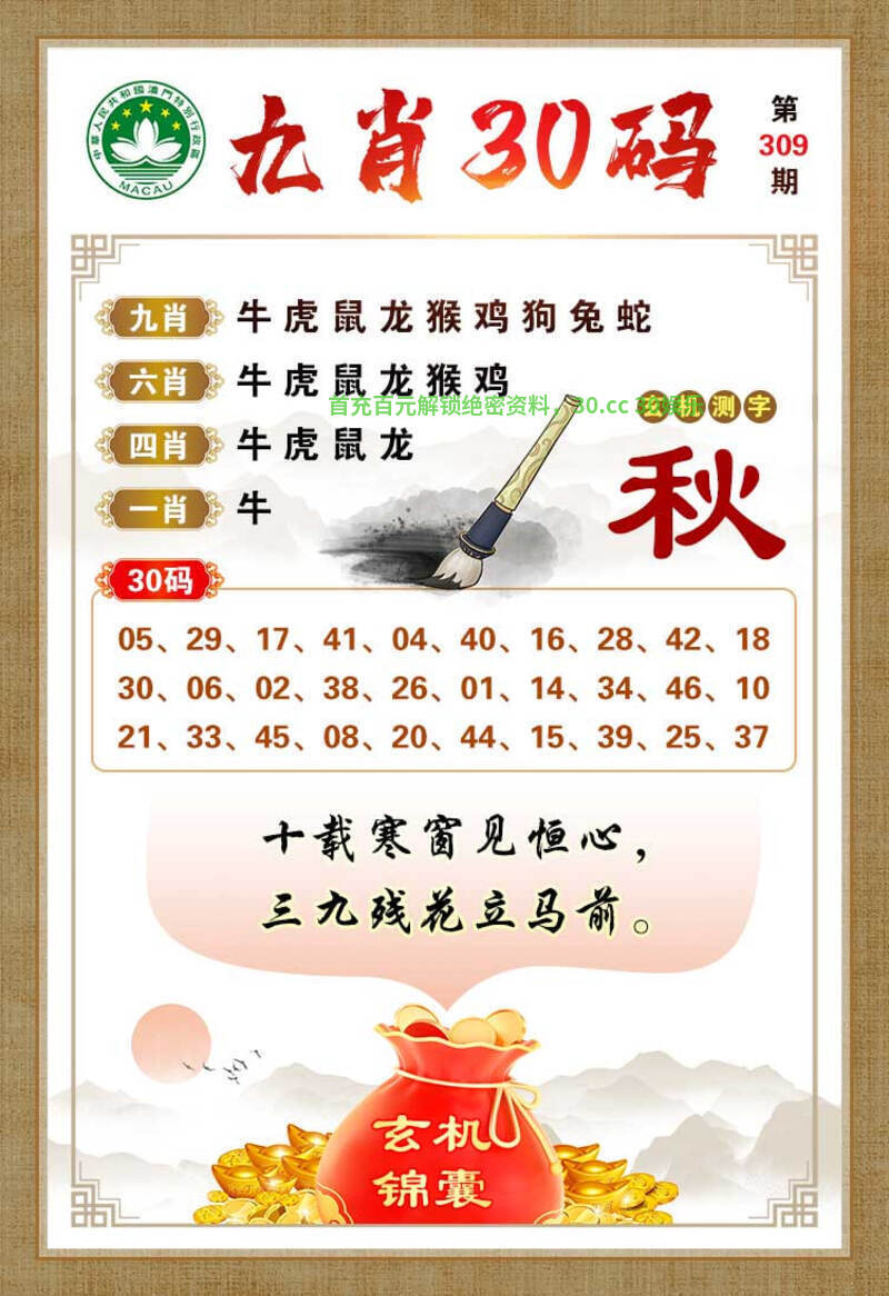 306期:⑨肖【狗牛兔马鼠龙虎猴蛇】开:牛17